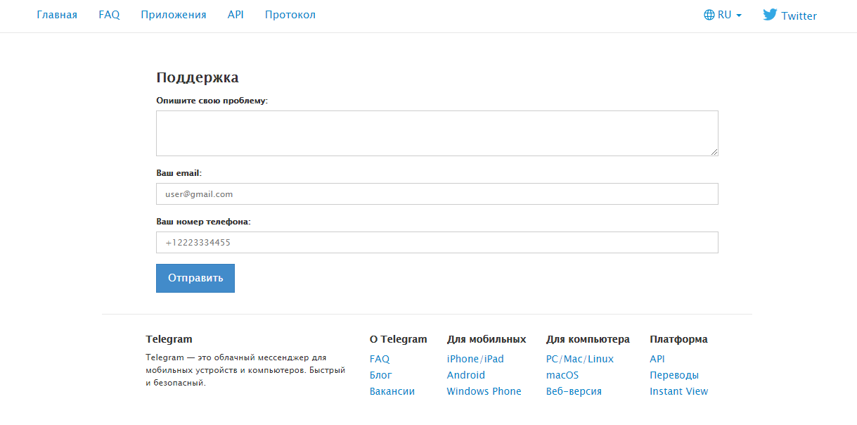 Если у пользователя Телеграма нет возможности войти в личный аккаунт, он может обратиться в службу поддержки на стороннем сайте https://telegram.org/support. Писать о своей проблеме рекомендуется исключительно на английском языке. Ответ придет на электронную почту клиента Telegram.