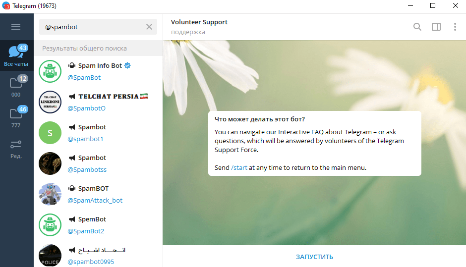 Если у клиента Телеграма есть возможность войти в свой профиль, то все проблемы он сможет решить в рамках мессенджера. В приложении есть специальный бот @spambot, который помогает при блокировке аккаунта