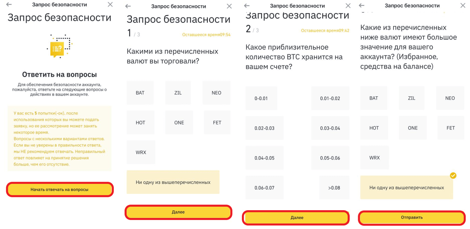 Чтобы отправить запрос на сброс безопасности, сервис предлагает ответить на 3 вопроса, касаемо действий в вашем аккаунте (вопросы могут отличаться от указанных на скринах ниже). Перед тем, как начать процесс сброса следует ознакомиться с предупреждениями и кликнуть на «Начать отвечать на вопросы».