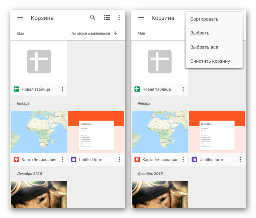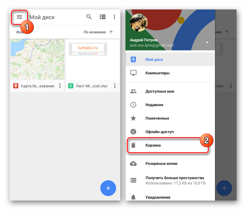 - Официальное приложение для управления облачным сервисом Google, по аналогии с Яндекс Диском, предоставляет автоматическую синхронизацию файлов. По этой причине все найденные на устройстве документы и удаленные при помощи Google Drive будут перемещены в раздел «Корзина».