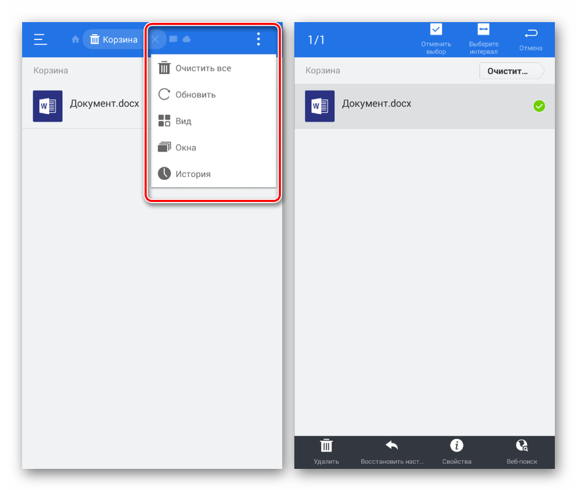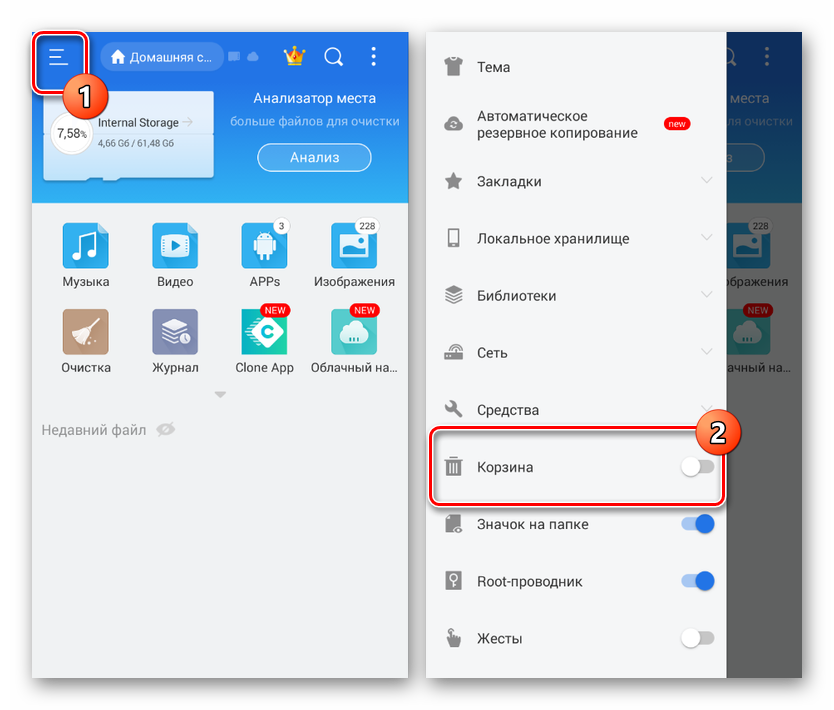 Приложение ES Проводник является одним из наиболее популярных файловых менеджеров, предоставляющим множество функций для управления файлами на устройстве. К числу подобных возможностей также относится раздел «Корзина», воспользоваться которым можно для восстановления или удаление документов.
