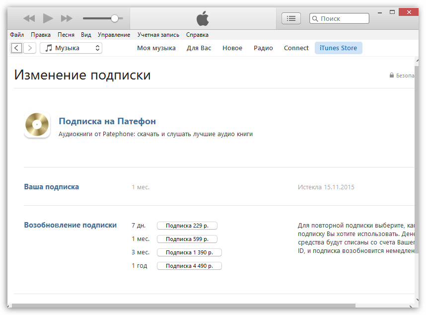 - Убедитесь в том, что вы отключили все нежелательные подписки. В меню iTunes нужно посмотреть состояние подписок – нет ли там платных приложений, которые могли бы регулярно списывать с вас деньги. Если такие подписки есть, отмените их в том же пункте меню.