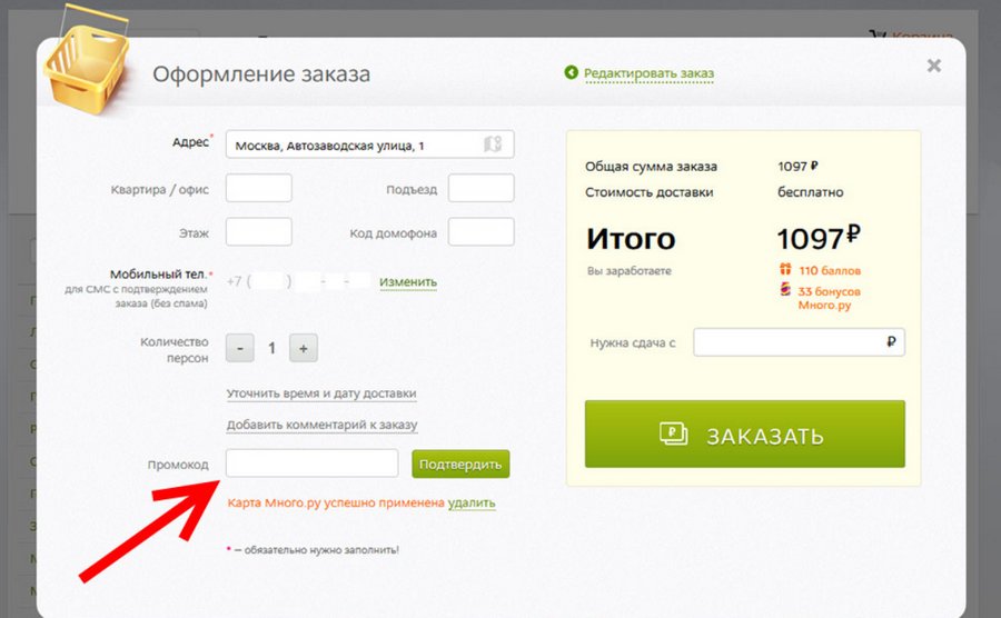 Если не использовать какие-либо коды, на накопление нужного числа баллов придется спустить 5 тысяч рублей, а ведь тратить такую сумму на 1 прием пищи вряд ли кто-то захочет. Следовательно, примерно за 5-10 заказов необходимое число набирается.