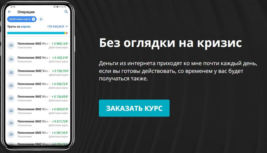 Вот такой курс, без оглядки на кризис. Деньги из интернета будут приходить Вам каждый день!