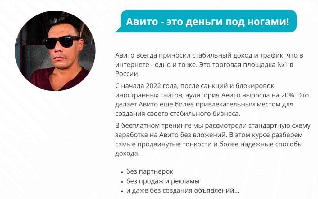 Ну, а заработок на Авито, это вообще один его самых первых, популярных и постоянно обновляющихся, актуальных курсов. Думаю программу курса вы можете сами посмотреть, перейдя по этой ссылке >>>