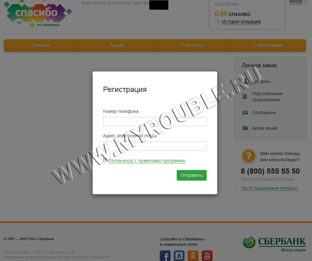 - Получаем пароль на телефон – с его помощью можно будет входить в систему в дальнейшем, а также связываться с контакт-центром бонусной программы.