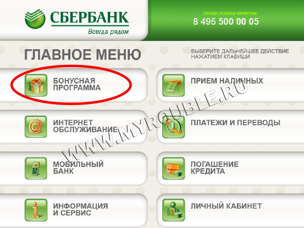 - В открывшемся меню выбираем «Бонусная программа» или «Спасибо от Сбербанка» (интерфейс устройств постоянно меняется).