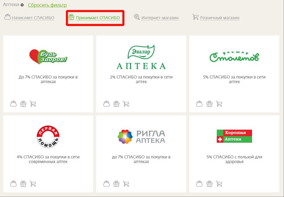 *Обратите внимание, тратить бонусы можно только в магазинах, которые являются партнерами бонусной программой. С полным списком вы можете ознакомиться на официальном сайте СберСпасибо, предварительно указав свой город проживания