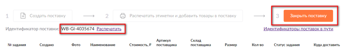 Распечатываем ИП и предъявляем его при сдаче штрих-кода поставки — на коробке или с телефона.