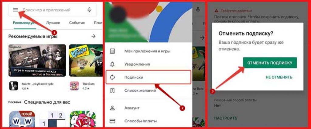 Если телефон работает на базе этой ОС, зарегистрированный аккаунт ОККО не может быть не привязан к Google Play. Отписка происходит через данный ресурс. Алгоритм таков: