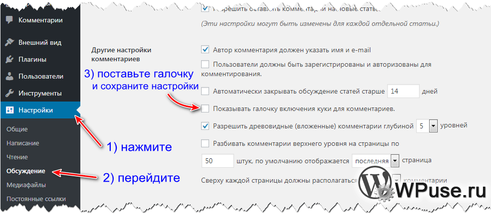 Также этот способ подходит для тех, кто включил опцию, что приводилась в первом варианте, но соответствующий пункт под формой написания комментария так и не появился.