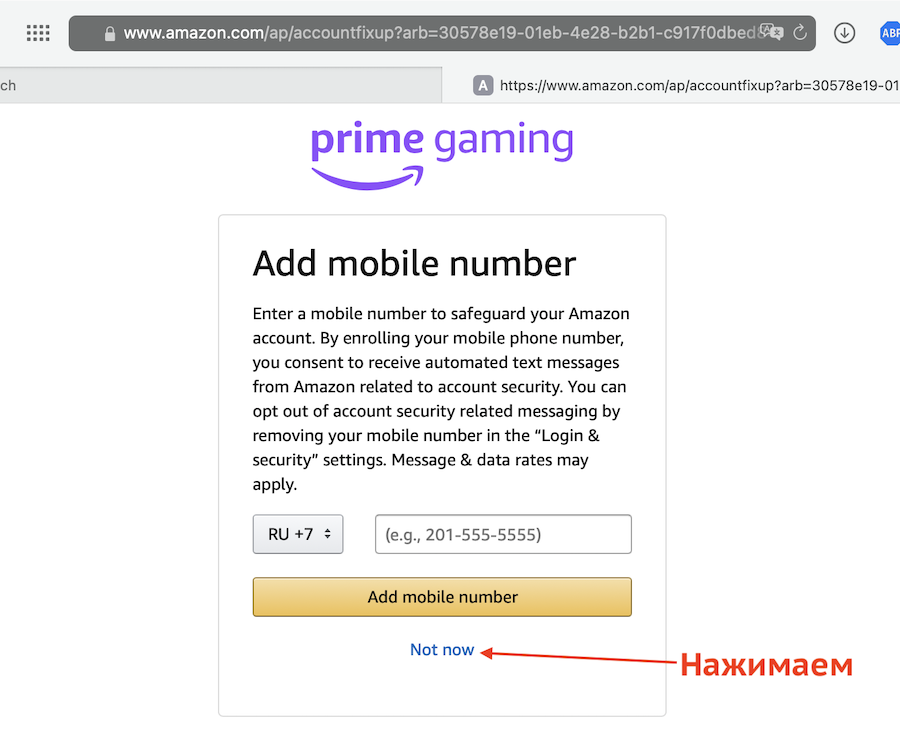 Нас перебрасывает на сайт подписки Prime Gaming от Amazon.