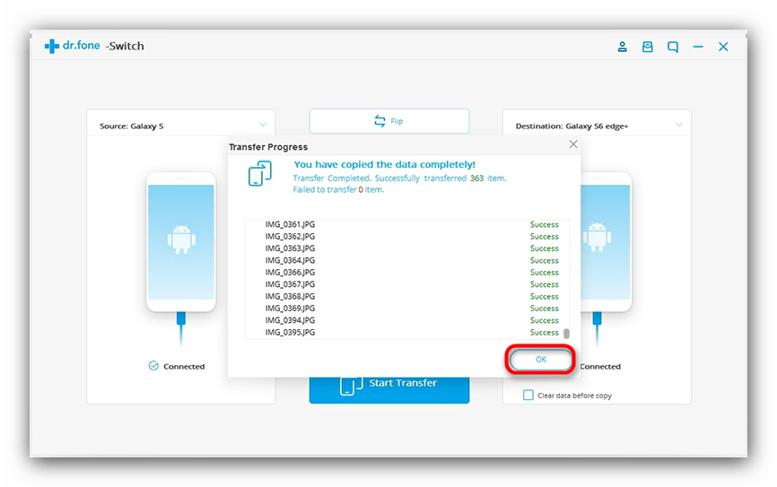 - Вы можете поставить справа галочку «Clear data before copyng» (Очистить данные перед копированием) на новом устройстве, если это необходимо;