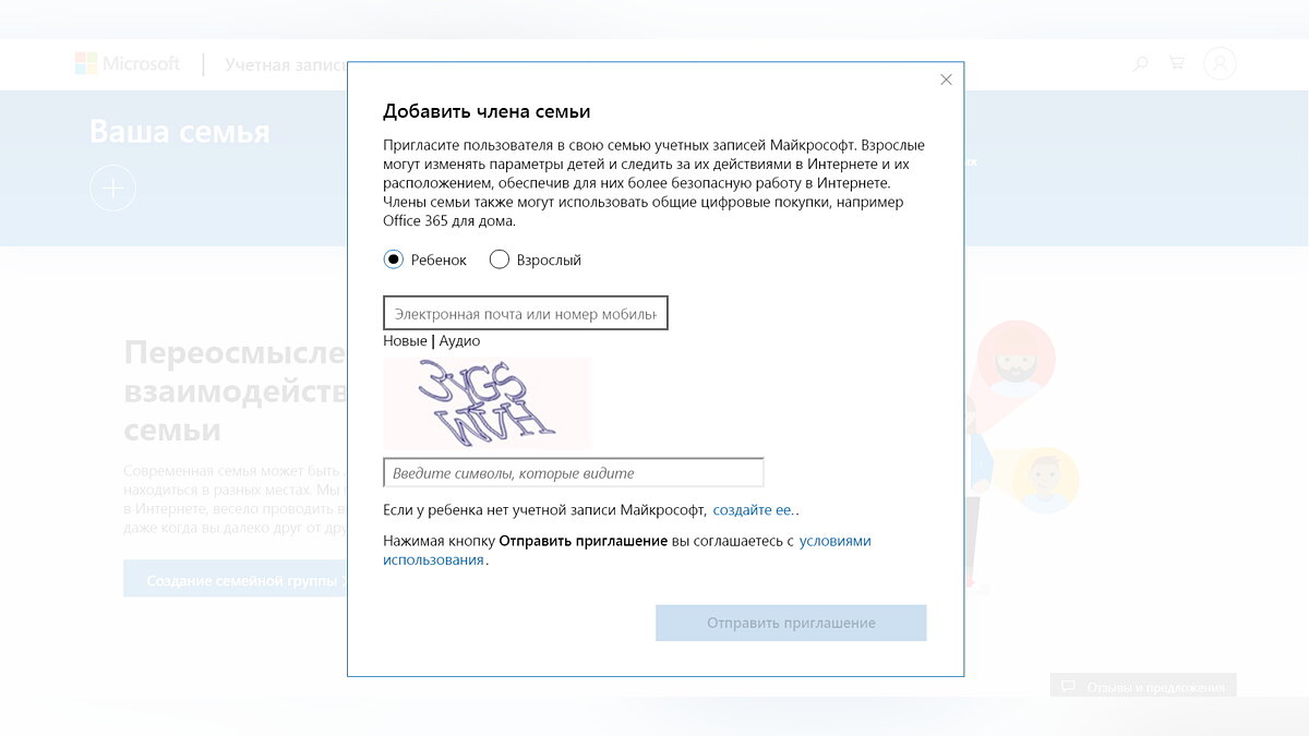 Итак, когда нужное число учеток создано, зайдите на страницу семьи в Microsoft Accounts, и пригласите других пользователей.