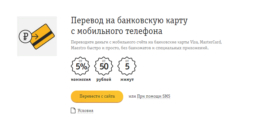 Для людей, использующих «Beeline»: данный оператор также допускает перечисления на номера счетов карт через официальный портал (имеется специальная форма).