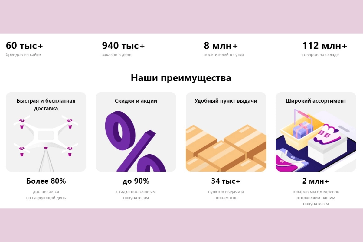 40% от всех заказов клиенты забирают самостоятельно. На сегодняшний день у Wildberries более 600 пунктов самовывоза по России, Беларуси и Казахстану. В течении года планируется открытие еще 100-150 таких точек.