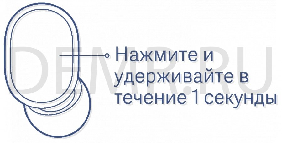 - Не извлекая наушники из кейса зажмите сенсорные кнопки в верхней части наушника на 10-20 секунд. Лучше всего использовать для этого два пальца.Индикатор на обеих наушниках должен загореться и замигать.