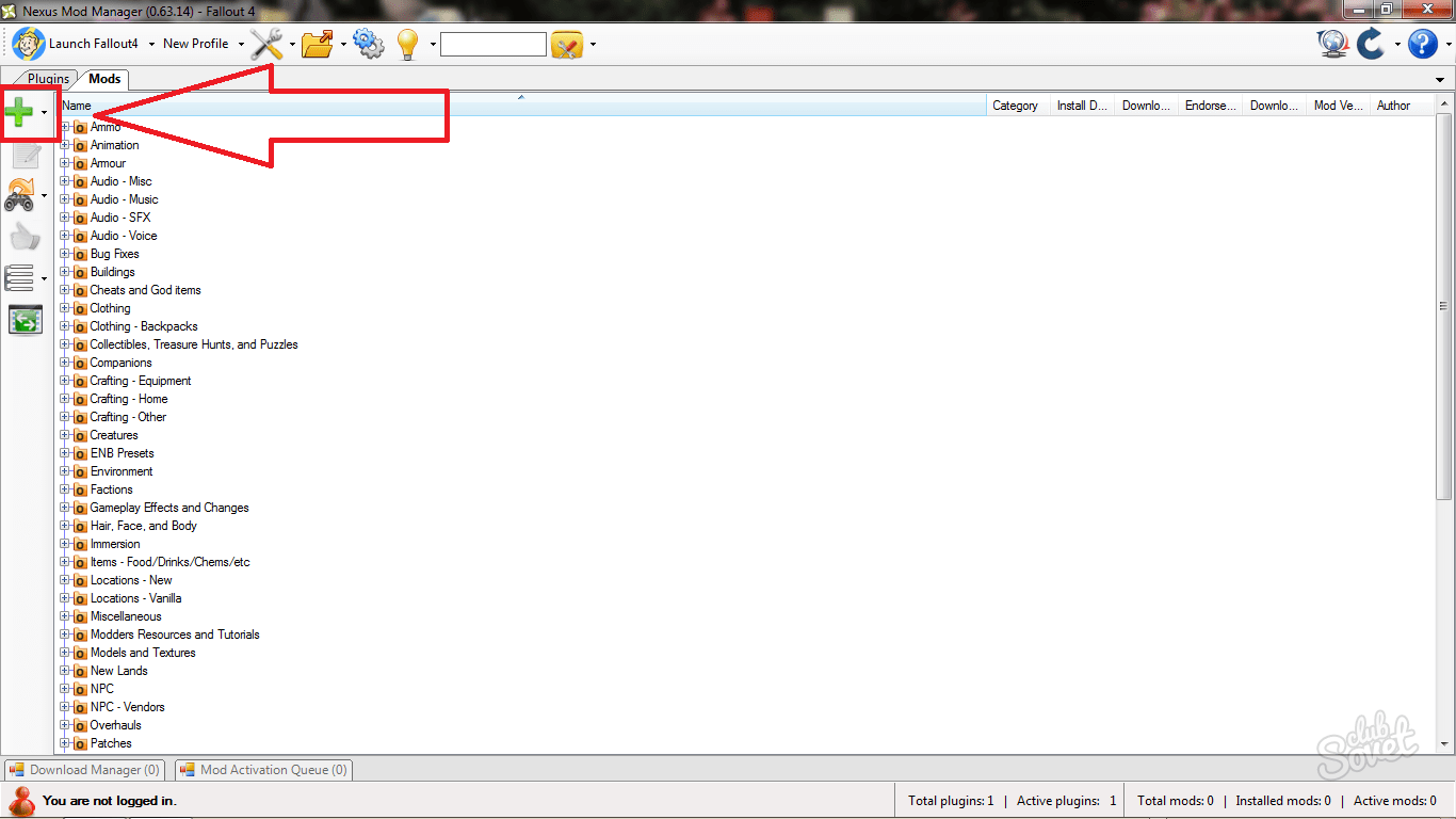 - Откройте окно Nexus mod manager и выберете иконку зеленого крестика, чтобы добавить мод вручную, если программа его не распознала. Также в основном окне вам доступны некоторые другие модификации для игр.
