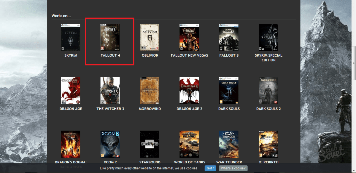 - В списке предложенных игр нужно отметить галочкой интересующую вас, то есть Скайрим.