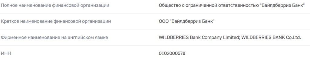 Мы уже писали про «Вайлдберриз банк», который начал открывать клиентам специальные карты. На момент подготовки статьи сайт не открывается, но банк действительно работает, о чём говорит выписка на сайте Банка России. Компания Вайлдберриз выкупила «Стандарт-кредит» – не самую большую финансовую организацию. Сделка завершена 11.02.2021, новое название появилось 05.08.2021: