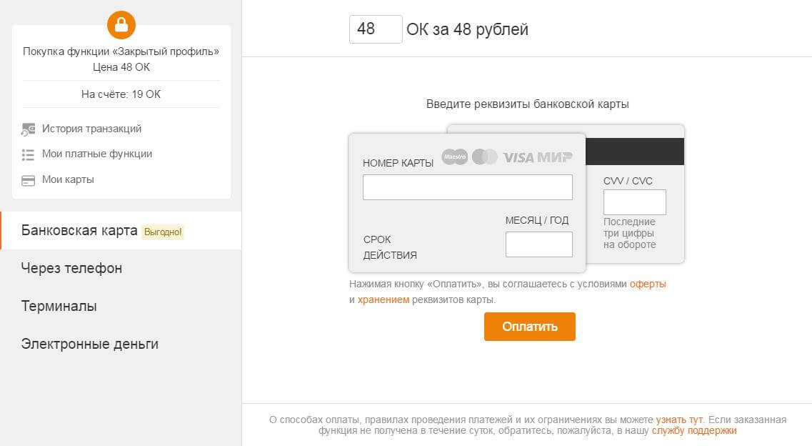 Обойдется данная услуга в 48 ОК. ОК – это внутренняя валюта сайта ok.ru. С ее помощью пользователи могут отправлять подарки, использовать в играх и приложениях и открывать доступ к новым функциям (к примеру, сделать закрытый профиль).