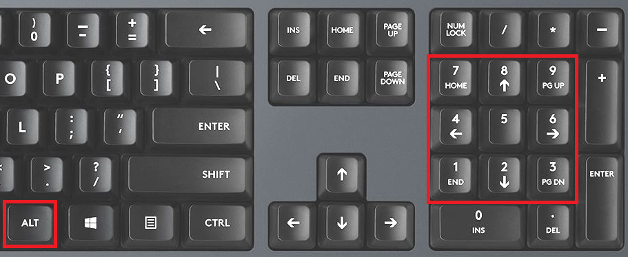 Теперь зажимаете Alt и вводите цифры 36 на цифровой клавиатуре, после чего убираете палец с кнопки Alt.