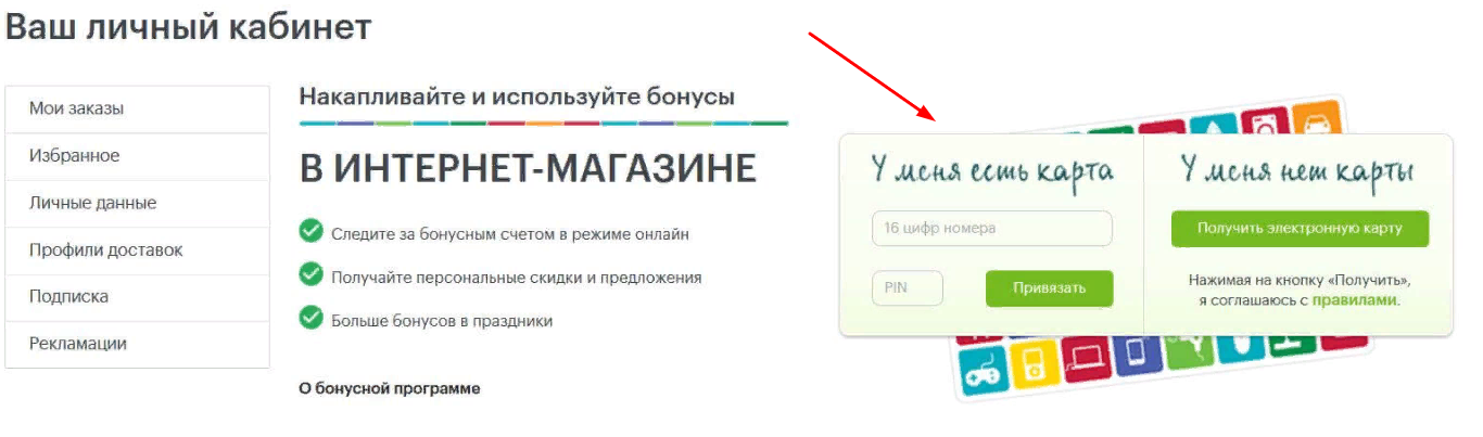 После того, как карта была привязана в личном кабинете, заработанные бонусные рубли будут начисляться в автоматическом режиме после каждой оплаты товара, не важно, осуществлена она в интернете или в магазине. Чтобы использовать их, достаточно указать их сумму, которую покупатель желает списать, при приобретении в интернете или сказать ее кассиру
