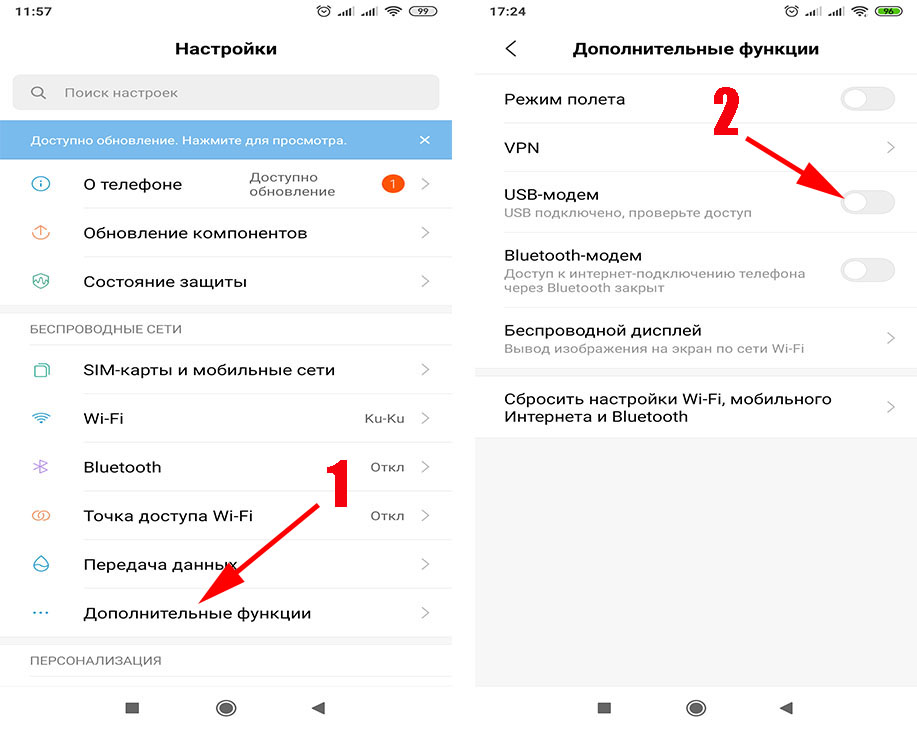 Если компьютер не поддерживает подключение по Wi-Fi (отсутствует нужный модуль и гарнитура), стоит использовать телефон в качестве стандартного usb-модема. Для этого следует: