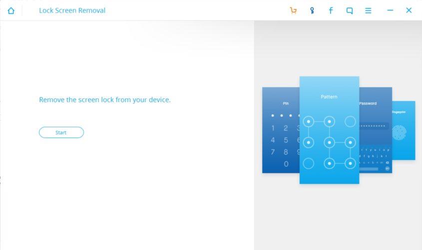 Запустите программу на своем компьютере и выберите Экран блокировки. Затем с помощью USB-кабеля подключите телефон Samsung к компьютеру. В этот момент интерфейс программы выглядит так, как показано ниже, нажмите «Пуск».