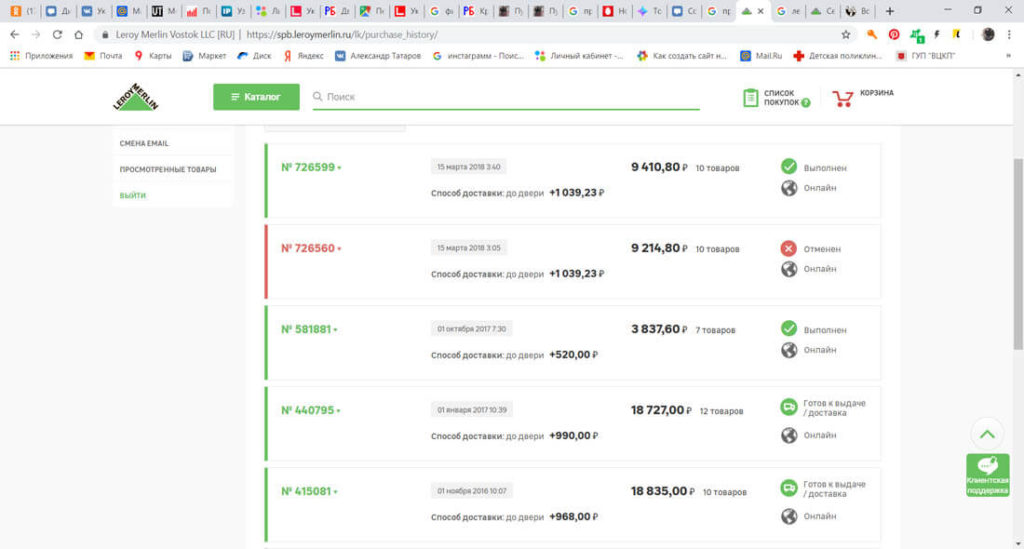 История покупок в магазине Леруа Мерлен без сервисной карты