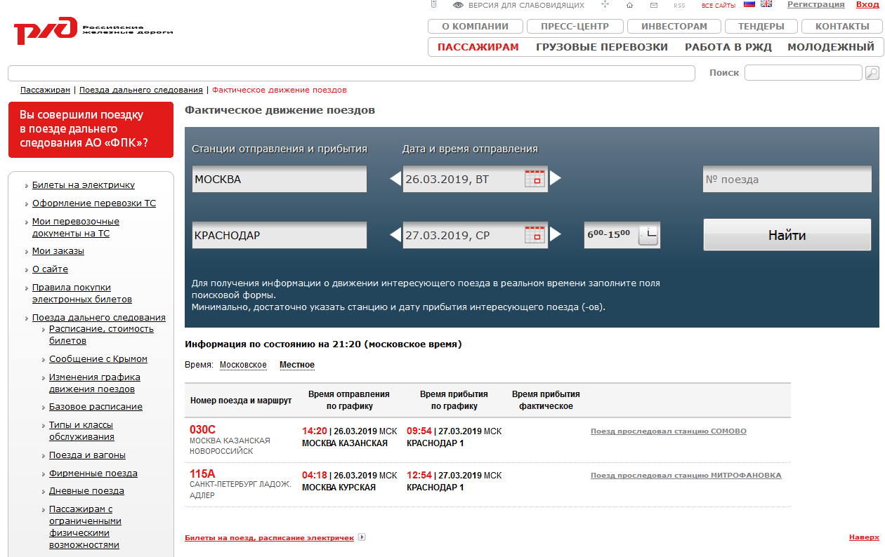 Несмотря на это на официальном сайте «РЖД» можно найти более детальную информацию о задержках железнодорожного транспорта, времени его фактического прибытия на конкретную станцию.