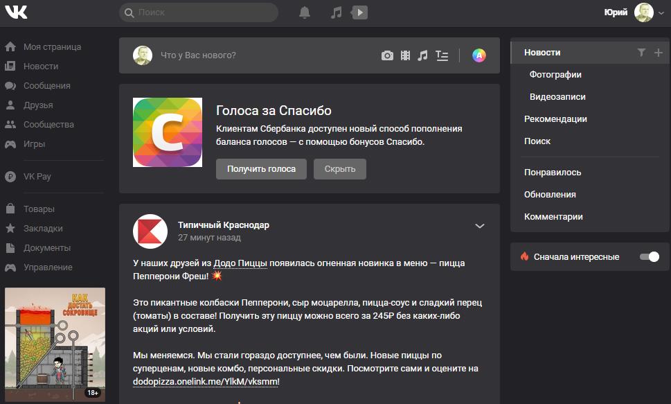 С помощью программы вы можете создать на ПК в ВК черную тему, для этого выполните следующие действия: