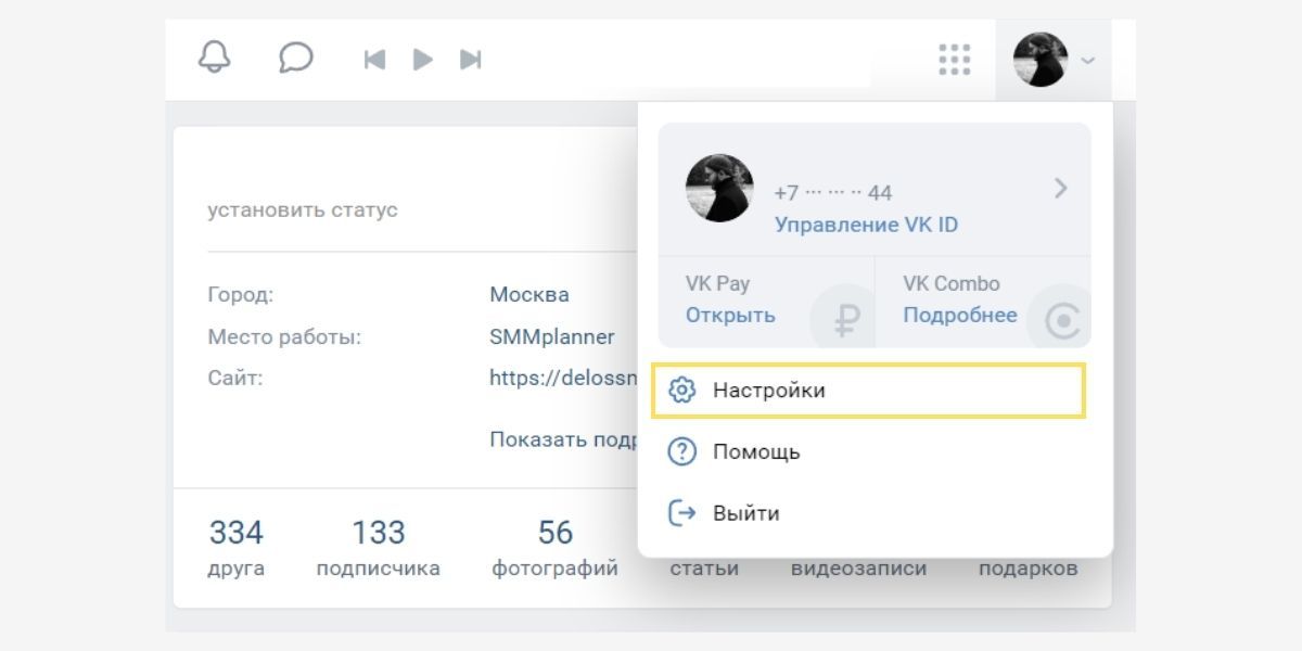 Итак, процесс сокрытия страницы через базовый функционал ВК проходит следующим образом: