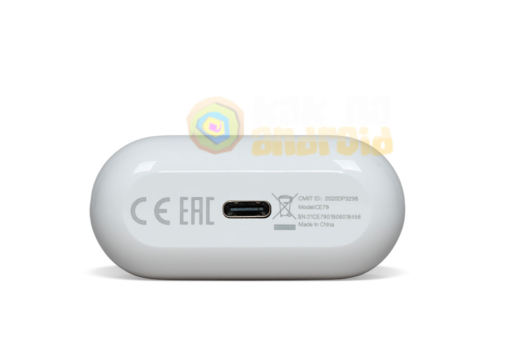Для его подзарядки необходимо подключить кабель идущий в комплекте в разъем расположенный на нижней грани кейса, а другой стороной – в любое устройство с портом USB (будь то зарядка от телефона, powerbank или что-либо еще). В том случае, если ваш смартфон для подзарядки также использует порт USB Type-C, можно пользоваться его проводом, а не “родным”. Полное время зарядки батареи кейса емкостью 500 мАч составляет час-полтора (в зависимости от зарядного устройства).