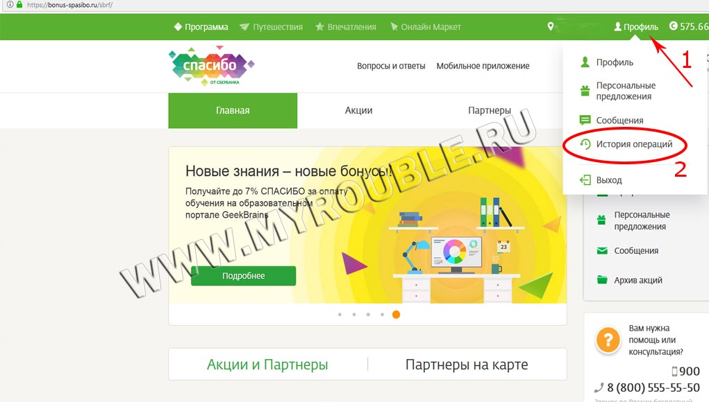 Все начисленные баллы отражаются в истории операций бонусной программы. Для того, чтобы увидеть, сколько и за что вам начислили, войдите на сайт программы (например, https://bonus-spasibo.ru/sbrf) и проведите следующие действия: