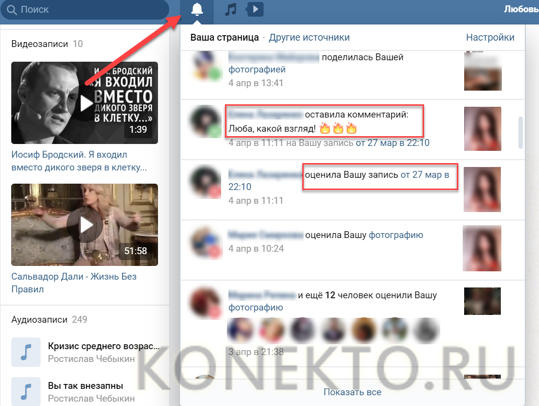 Самый честный, удобный и понятный вариант. Посмотрите лайки и комментарии, которые были оставлены на вашей страничке другими пользователями. Сделать это несложно – кликните по иконке в виде колокольчика, обозначающей «Уведомления». Откроются все последние действия, так или иначе затрагивающие владельца аккаунта. Можно увидеть, кто комментировал ваши записи, ставил лайки, делал репосты и т.д.