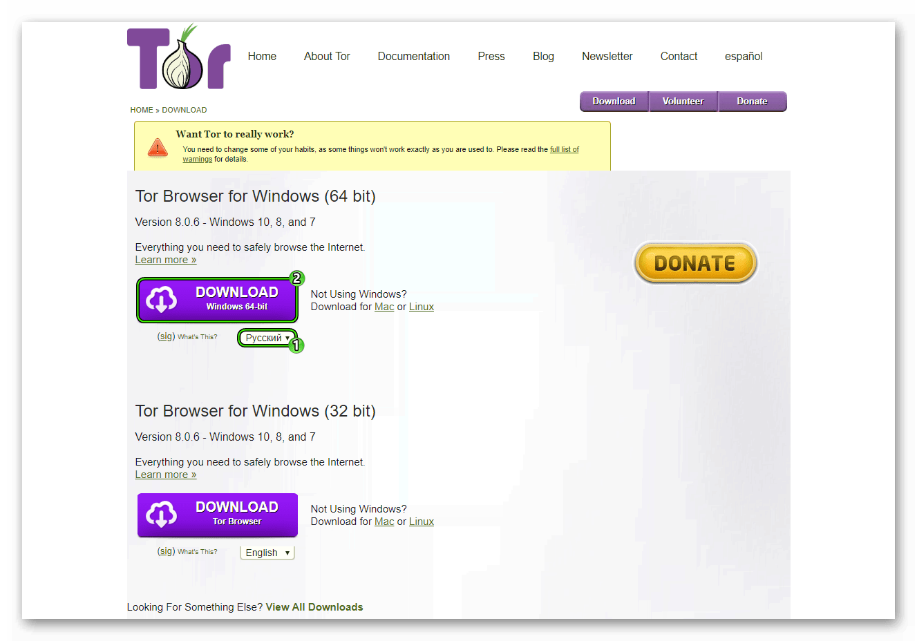 - Откройте страницу https://www.torproject.org/download/download-easy.html.en.