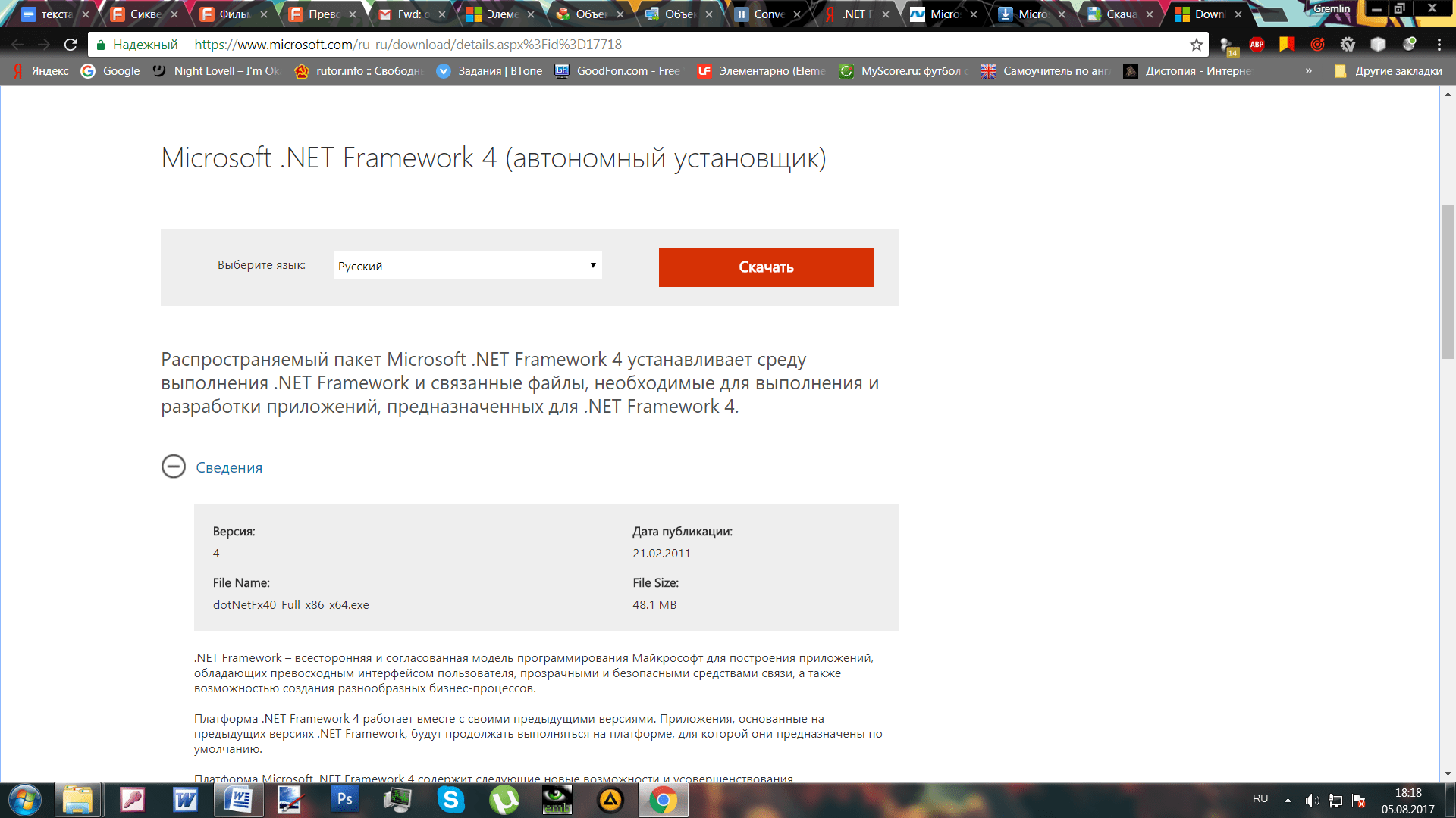 Для поддержания всех услуг и стабильного доступа к различным ресурсам, обязательно должен быть установлен фреймворк не ниже версии 3.5.