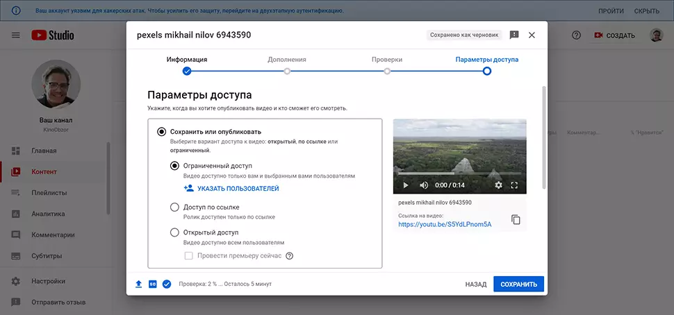 При тестировании случился казус – ролик с компьютера не загрузился: процесс затормозился приблизительно на середине загрузки.