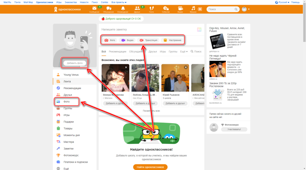 Доступные возможности Одноклассников для зарегистрированных пользователей