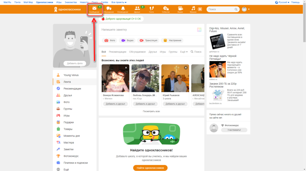 Одноклассники без пароля и логина (без регистрации) и поиск людей