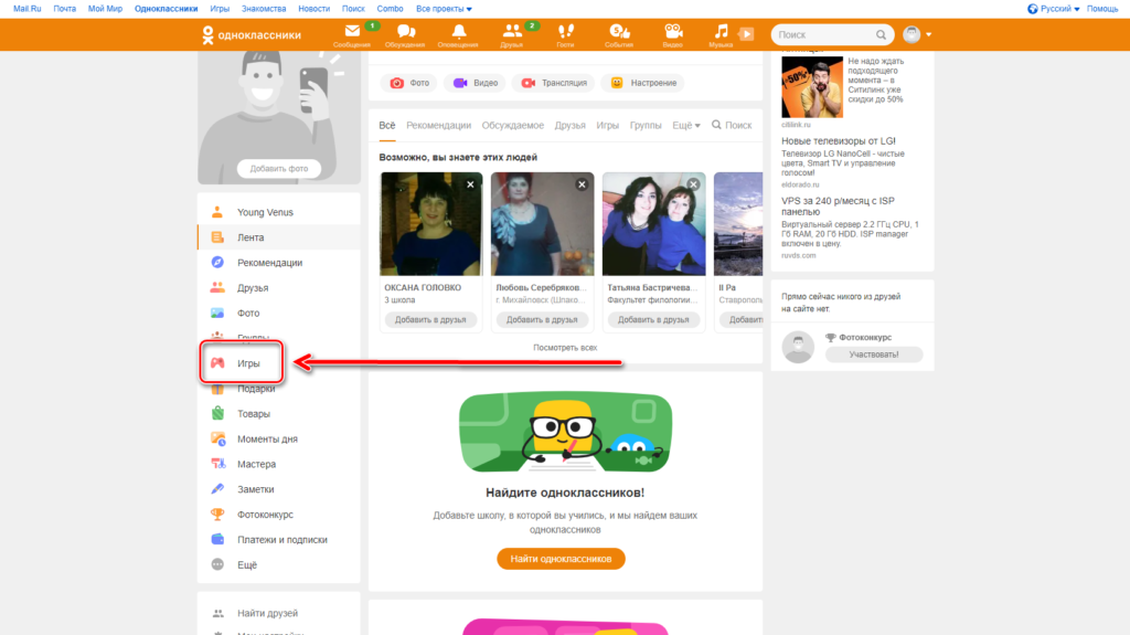 Если стало скучно проводить время в соцсети, то рекомендуется обратить внимание на раздел с играми и приложениями. Каждый может найти здесь для себя подходящий вариант