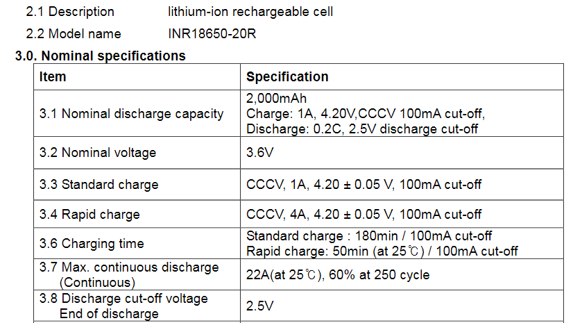 Вот, к примеру, спеки самсунговских «банок» 18650, работающие в таких режимах: