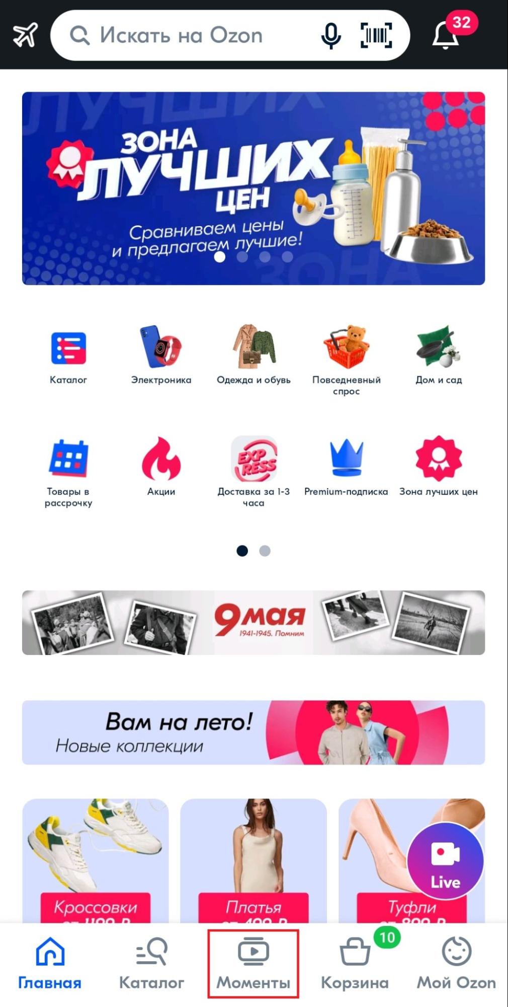 Что это такое. «Моменты» — это отдельная вкладка в приложении маркетплейса. Она находится внизу прямо посередине. Внутри вкладки — три ленты с разным контентом: