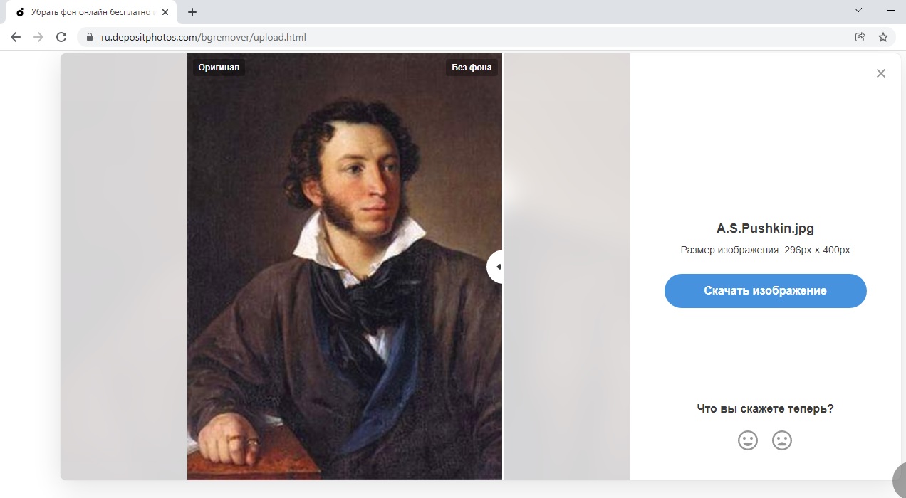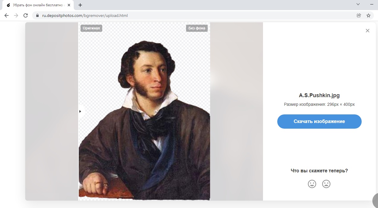 Шаг 3. Фон убирается автоматически, при этом можно посмотреть, как изображение выглядит с задним планом и без него.