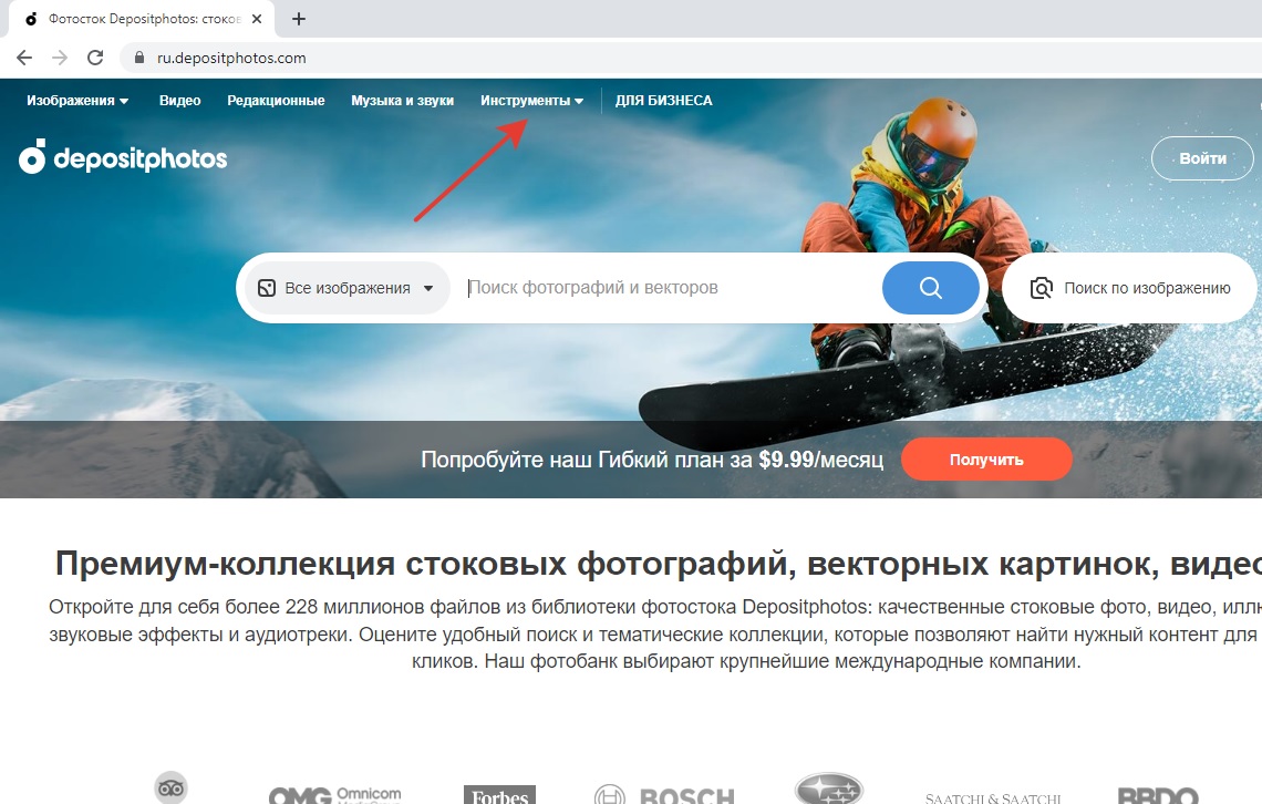 Произвести нехитрую операцию по удалению фона на картинке можно в режиме «онлайн» на известном фотостоке Depositphotos.com в разделе «Инструменты». На ресурсе функционирует продвинутая система поиска по фотографии, инструменты для увеличения изображений и собственно фотосток, содержащий 228 миллионов платных и бесплатных фотографий и картинок.