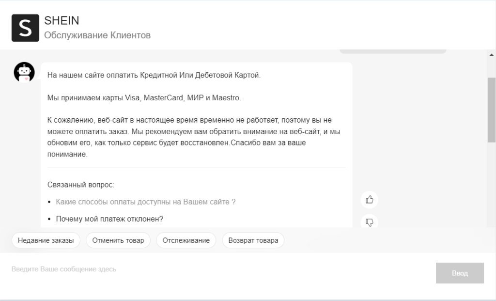 На самом деле неясно, Shein уходит из России или нет в 2022 году, поскольку официальная информация по этому поводу отсутствует. Можно предположить, что онлайн-оплата товаров китайского бренда станет возможна, когда в России полноценно заработают карты платёжной системы Union Pay.