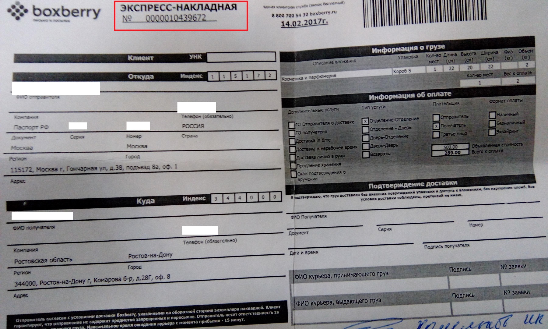 - Доставка из отделения Москвы в отделение Санкт-Петербурга;