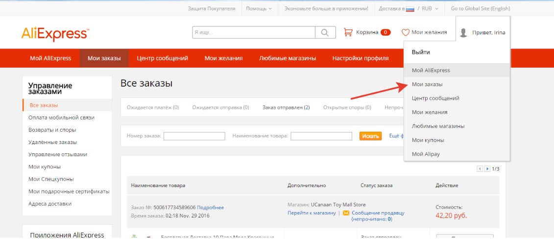 Откройте главную страницу и в правом выпадающем меню нажмите «Мой Алиэкспресс».