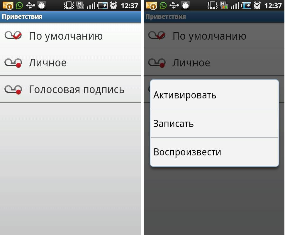 Уведомления о пропущенных вызовах приходят как обычно, в виде СМС, а голосовые сообщения отображаются в программе “Визуальный автоответчик” на телефоне. Их можно прослушивать сколько угодно раз, а также перематывать и ставить на паузу, как обычный аудио-ролик. То есть перед вами список полученных записей + функционал для их управляемого проигрывания. Отсюда и название программы.